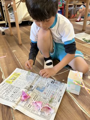 来週にはきれいな押し花が完成していると思うので押し花を使って何ができるのか楽しみにしていてくださいね♪