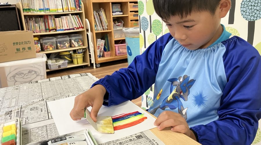 今日は5色の絵の具を使って虹を作りましたよ(^o^)