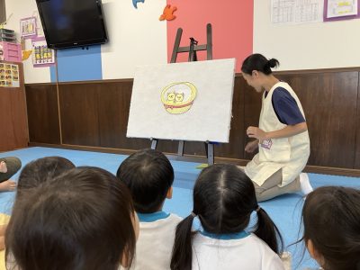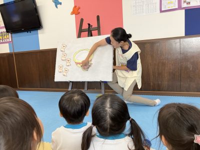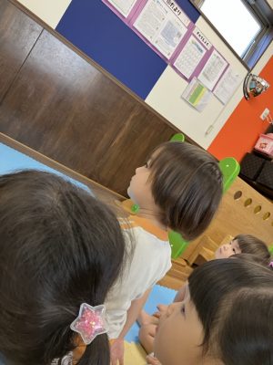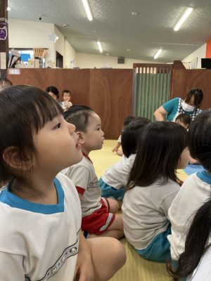 K先生のパネルシアターは集中して見ていて、出てくる動物の名前を答えたりお歌に合わせて体を揺らしたりと楽しそうに見ていましたよ♪