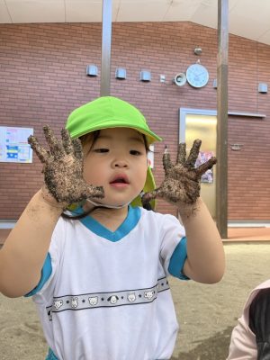 Sちゃんは砂の感触を楽しんでいました(^^♪