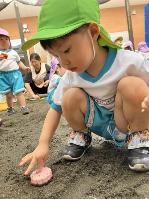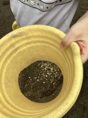 Ya君は砂をふるいにかけ、小さな石を集めていましたよ( *´艸`)