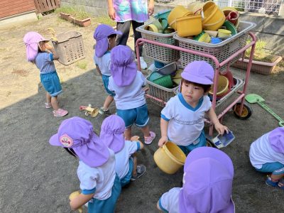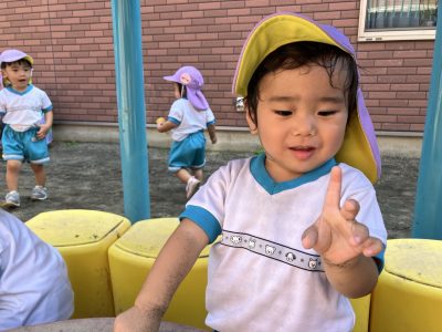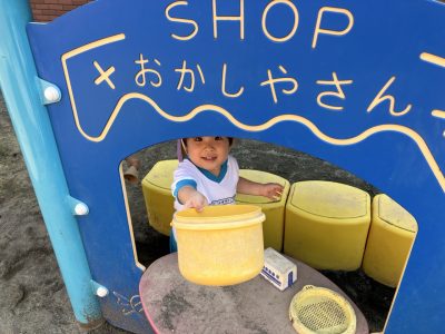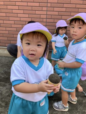 園庭ではサッカー教室が行われていたので遊具の方で遊びました。  みんなそれぞれ好きな遊びに夢中になり遊ぶ姿が可愛いです♫ アイスを崩さないようにそ〜っとお届け♫