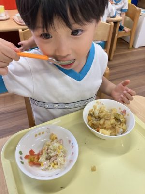 園に戻るとみんなの大好きなカレーが!