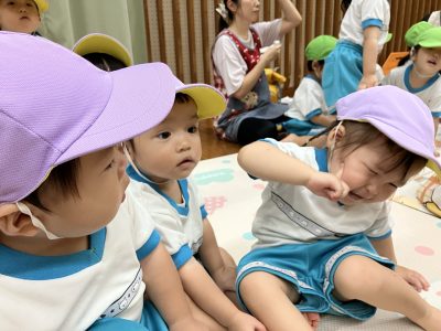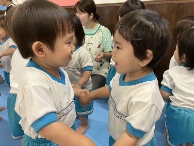 昨日のリトミックの様子からです(^^♪お友だちと手を取ったり、ぎゅーっとしたりとかわいいゆきぐみさん。絵本にも夢中でした!!