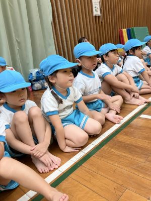 はなぐみさんの組体操では、みんな真剣に見ていました。