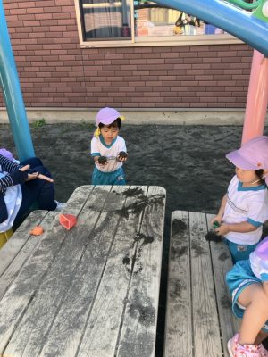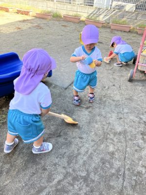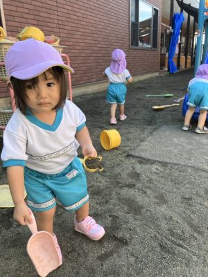 今日は園庭で遊びました。サッカー教室が行われていたため遊具のスペースで遊びました。 言葉も増えてきて友だち同士のやりとりが活発に見られるようになりました。みんなで何やら話しながら遊ぶ姿も♪本当にかわいいです♪バイクが置かれているのを発見したようです♪