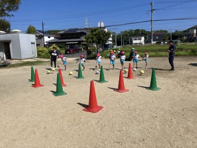 今日はコーンを狙ってボールをシュートしました!!