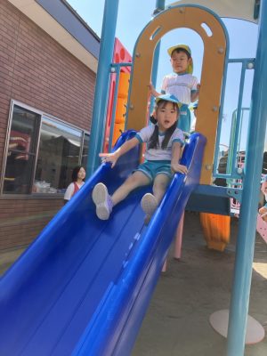 はなぐみさんと一緒に鬼ごっこをしたり滑り台や縄跳びを楽しみました(*’ω’*)