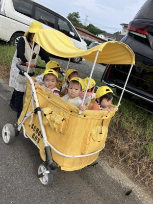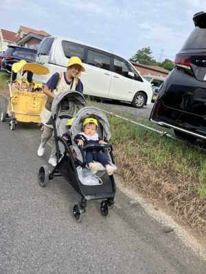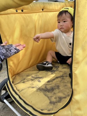 散歩車とベビーカーのお友だちも気持ちのよい風に当たり、とても気持ち良さそうなつきぐみさん🎵