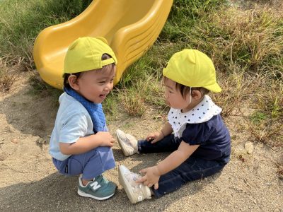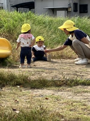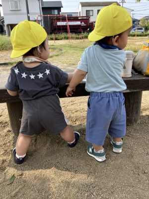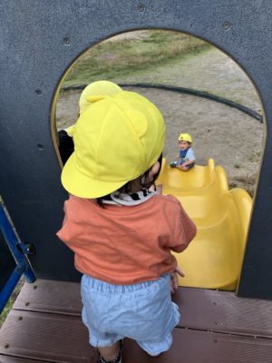 外の景色をじ~と見たり、保育士に向かってばぁ!!!とやりとりを楽しんだりと