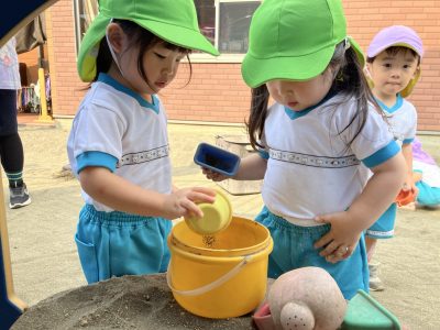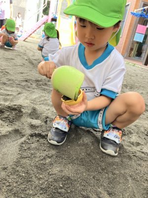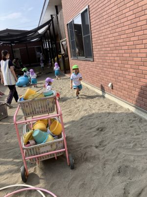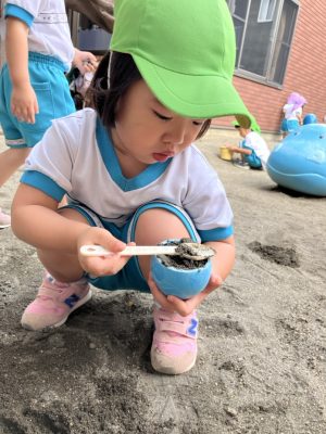 Rちゃんはウサギさんの上にある砂をキレイに落としてあげていました( *´艸`)