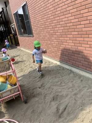 Eくんは砂が盛られて少し高くなったところでダッシュ!