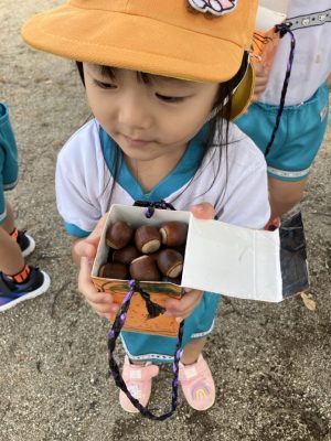 大きなクヌギがたくさん落ちていてみんな大興奮♬