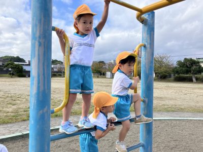 うんていがあり、「まだみんなには難しくないかな?」と思ったのですが、意外と挑戦したがるお友だちが多くG先生に足を支えてもらいながら進んでいました☆