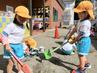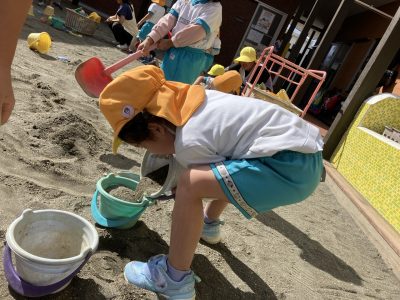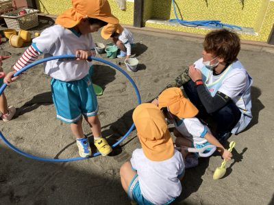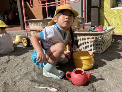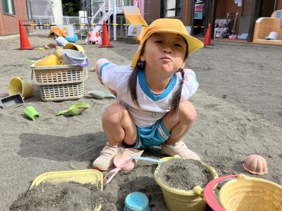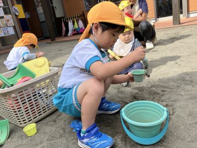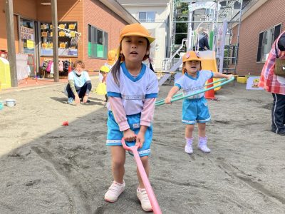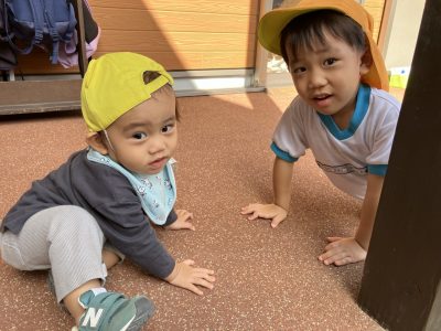 今週は遊具の色塗りがあって滑り台側では遊べませんが、くつばこ側でたくさん遊びたいと思います♪