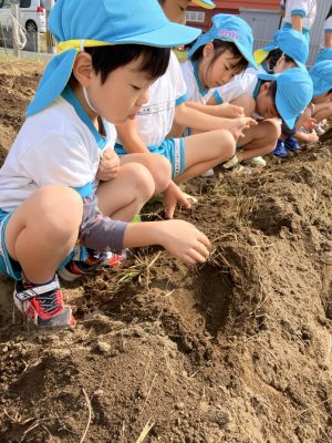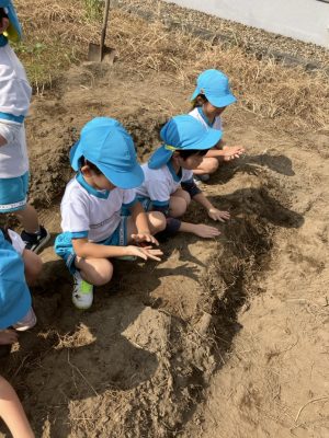 みんなで小さな種があんなに大きな大根になるの??とワクワクしながら植えました(*^-^*)