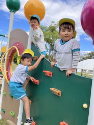 初めての公園で元気いっぱいに遊んで給食をモリモリ食べました!