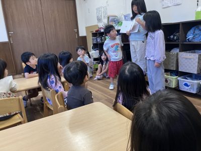 昨日の夕方、はなぐみさんが絵本の読み聞かせに来てくれました(o^^o)