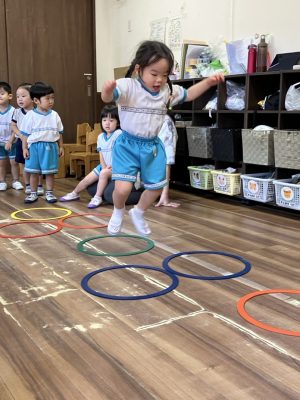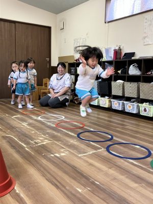 跳びながら手を叩きラバーリングの色を言う…という難しいことに挑戦(o^^o)