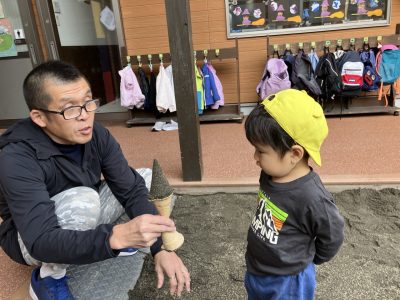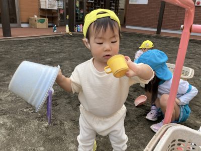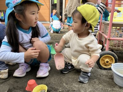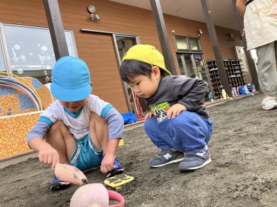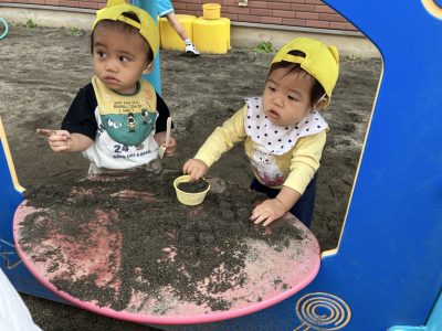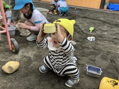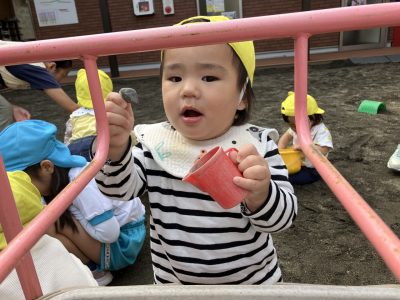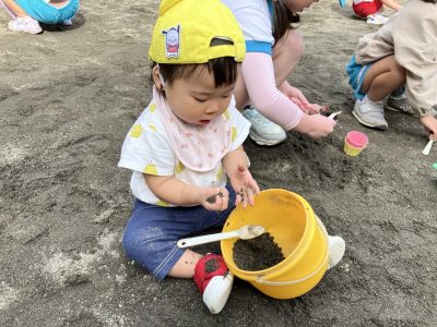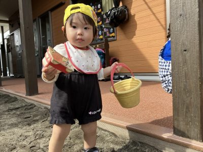 自分の好きな玩具を取り出して、砂遊びに夢中なつきぐみさん😍