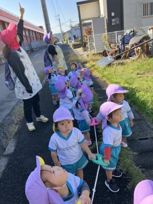 ■明日は、未満児遠足になります。クラスだよりに持ち物は記載していますので、ご確認をお願いします。