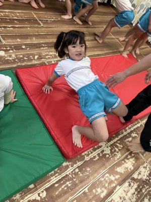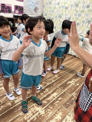 服装は上下水色の体操服、白い靴下、ピンク帽子です!ハンカチも忘れずに持ってきてください☆