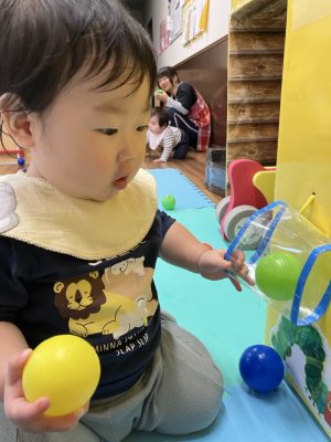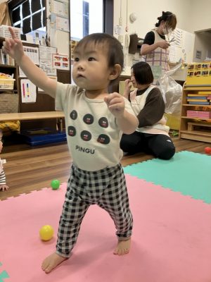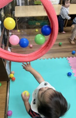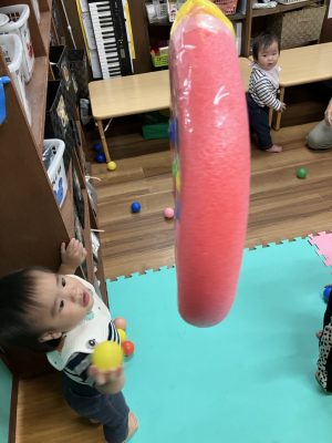 背伸びをしてボールをくっつけようと頑張っていました( *´艸`)