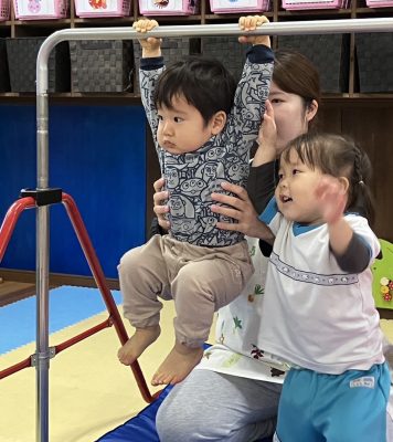ゆきぐみさんが鉄棒で遊んでいたので少しお邪魔してチャレンジしてみました(*^O^*)