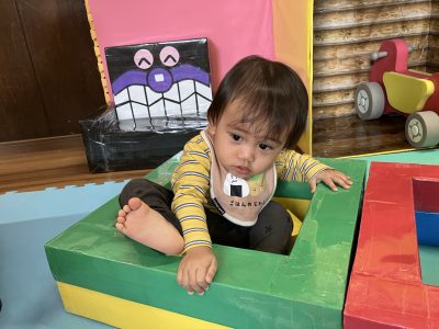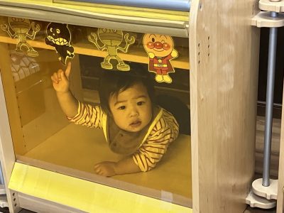お気に入りの場所で保育士にばいきんまんを指さしで教えてくれました⭐