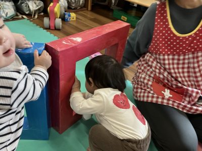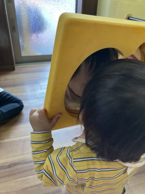 鏡の玩具も大好きで、顔をくっつけているYくんを発見👀