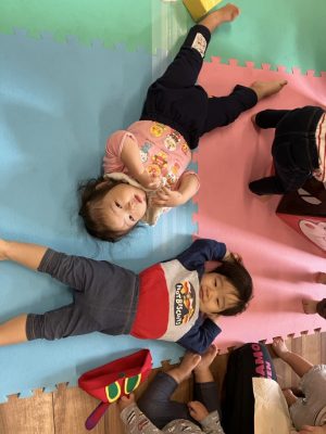 お部屋でたくさん体を動かしてたくさん給食も食べ、ぐっすり夢の中のつきぐみさんです(*^^*)