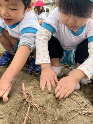 引っ張ってもなかなかぬけない子は友だちと協力してぬいていました!!