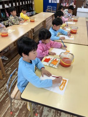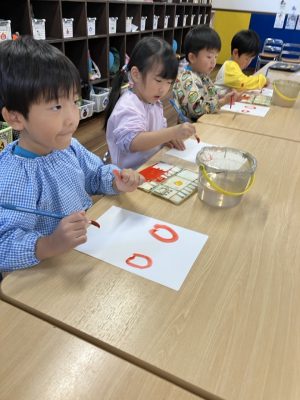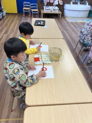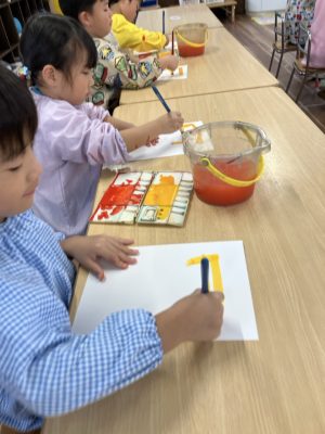 筆の持ち方、座り方を意識しながら集中して取り組むことができました。