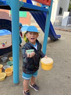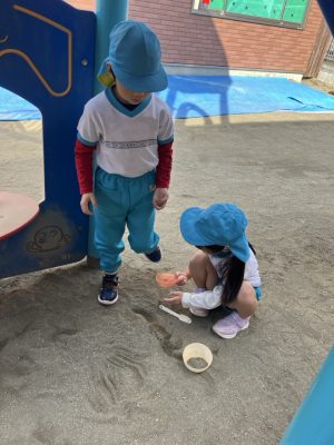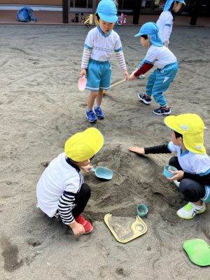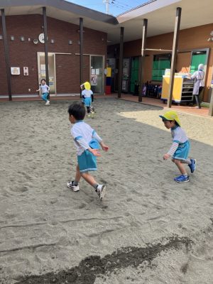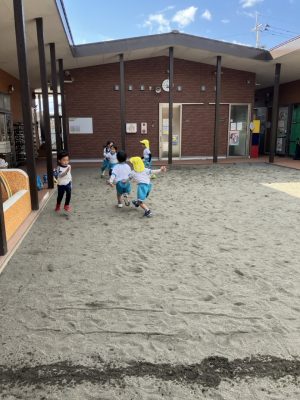 しっぽ取りをしたりごっこ遊びやお山をつくったりたっぷり園庭遊びを楽しみました☆ミ