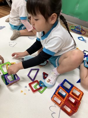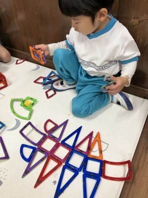 朝の準備が終わったお友だちからマグフォーマーで遊びました(*^-^*)