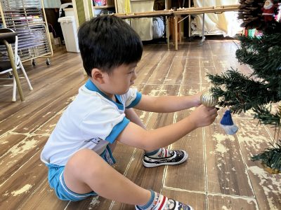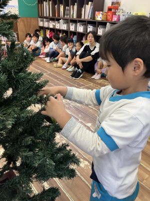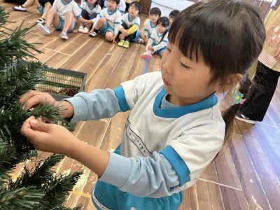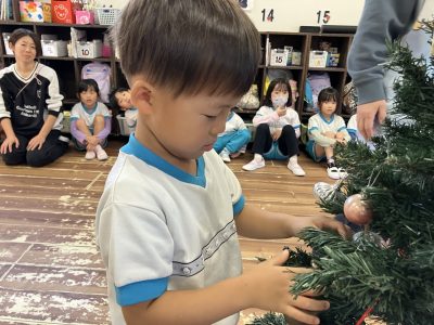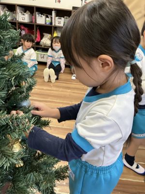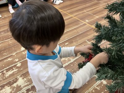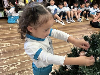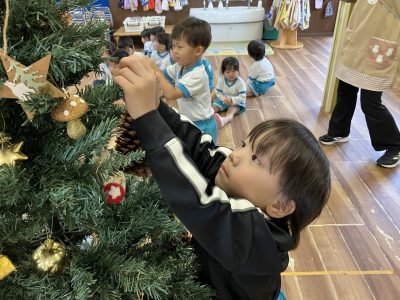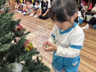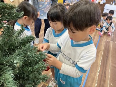 みんなで飾りつけをしたので、ツリーはとっても華やかになりました!