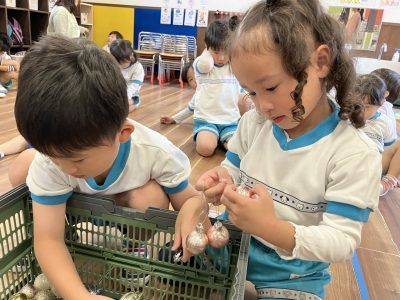 お友だちが飾っている様子にも興味津々な子どもたち♪