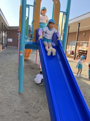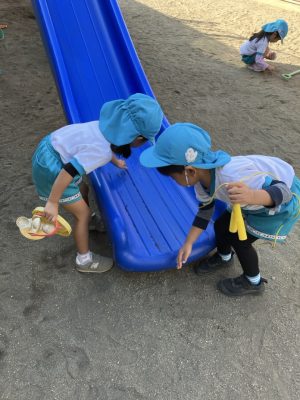 お友だちが滑り台を滑ろうとして滑り台に砂が落ちていたので、