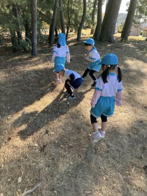 今日は製作に使う木の枝と松ぼっくりを探しに大在公園まで行ってきました♬