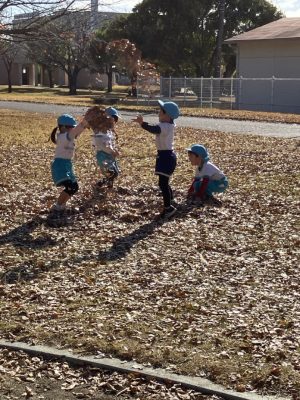 落ち葉の絨毯を見つけて落ち葉遊びが始まりました(´艸`*)