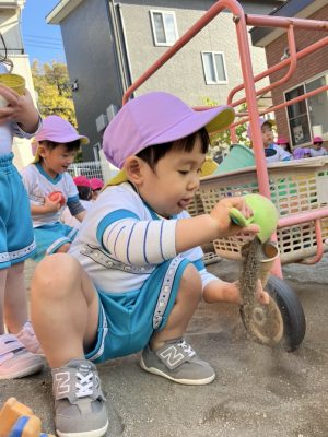 今日は園庭で遊びました。12月というのにまだまだ暖かく、長く外で遊べられるので子どもたちも嬉しそうです⭐︎