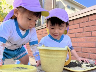 T君が持っているものはダンゴムシ!優しく潰さないように虫と触れ合うことができていますね(^^)